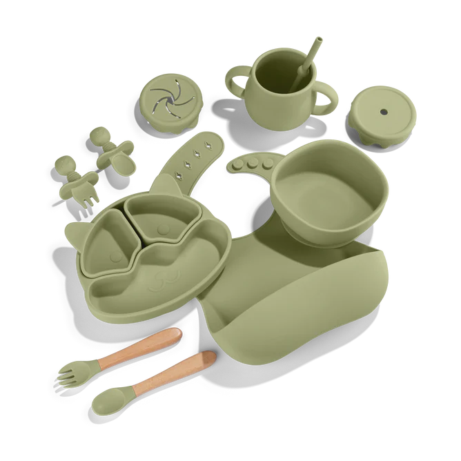 Survive the “chuck-it-on-the-floor” stage with one of our silicon mealtime feeding sets.