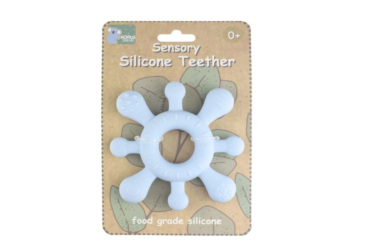 The Splash Silicone Teether in Blue from Koala Dream is a delightful and practical solution to soothe your teething baby. Crafted from high-quality silicone, these teethers are designed with textured surfaces on each end. The textures provide gentle stimulation and massage for your baby’s gums, providing much-needed relief during the teething process. The teethers thoughtful design includes easy-to-grip handles, allowing little hands to hold and manoeuvre it with ease. This feature encourages fine motor skill development while also providing a secure grip for your baby. Safety is a top priority, and the Splash Silicone Teether meets the highest standards. It is BPA-free, non-toxic, and completely child-friendly, ensuring your little ones well-being. You can have peace of mind knowing that the materials used are safe for your baby to chew on. Cleaning the teether is a breeze, as it is dishwasher-safe. This convenient feature saves time and effort, making it simple to maintain the teethers cleanliness and hygiene.