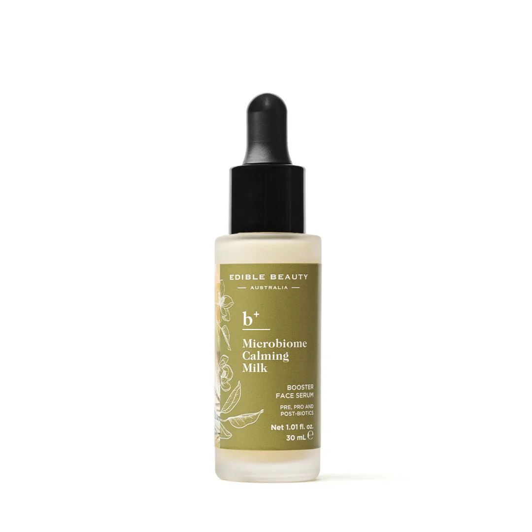 Postbiotics, Bifida Ferment Filtrate postbiotics are a critical component of the skin microbiome, as they are the byproduct and nutrients produced by probiotics – effectively they are the end result of well-fed probiotics. They can be used either by the good bacteria for their development or directly by the skin. BifiDaTM is an extract of fermented Bifidobacterium which is used in our Microbiome Calming Milk. It is rich in vitamins, protein and even lactic acid which further supports the growth of good bacteria on the skin microbiome. Studies have found that it helps to support a healthy skin barrier and supports skin DNA repair, whilst hydrating and strengthening the skin’s natural defences.